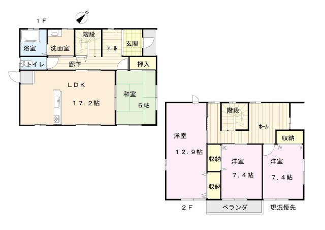 詳細間取 | 和室6帖洋室12.9帖7.4帖7.4帖LDK17.2帖 | ||