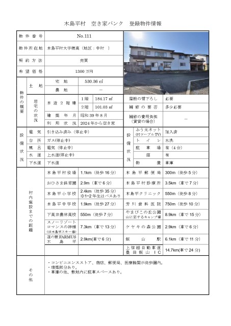 | 通学区 | 木島平村立木島平小学校(2400m) 木島平村立木島平中学校(1900m) | 引渡/入居日 | 相談 |