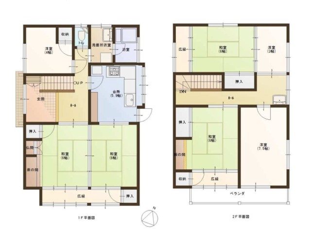 | 詳細間取 | 1階:和6・和6・洋4・DK 2階:和6・和6・洋7.5・洋3 | ||