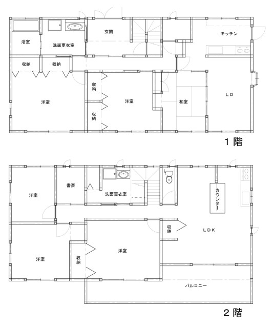 | 詳細間取 | 1階:和・洋・洋・LD・K 2階:洋・洋・洋・書斎・LDK | ||