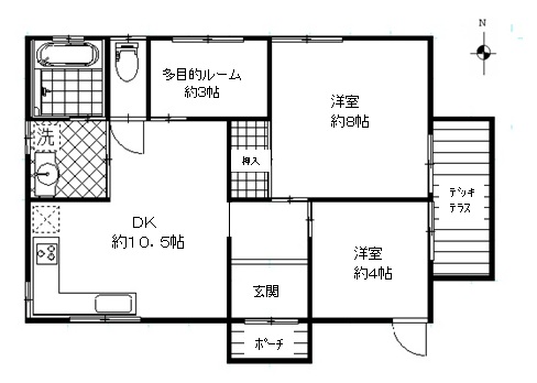 | 設備 | ・BT別室・トイレ・システムキッチン・給湯・洗濯機置場・洗面台・照明器具付き・エアコン・CATV・収納スペース・ウッドデッキ・閑静住宅街・ペット相談可・二人入居可・事務所使用可 | ||