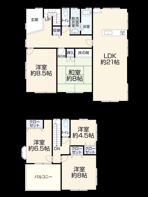 | 詳細間取 | 和8、洋8.5・8・6.5・4.5 LDK21 | ||