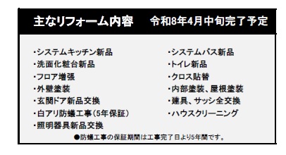 | 備考/防災情報 | ※令和8年4月中旬リフォーム完了予定 ※土地面積にはセットバック部分11.02㎡を含みます | ||