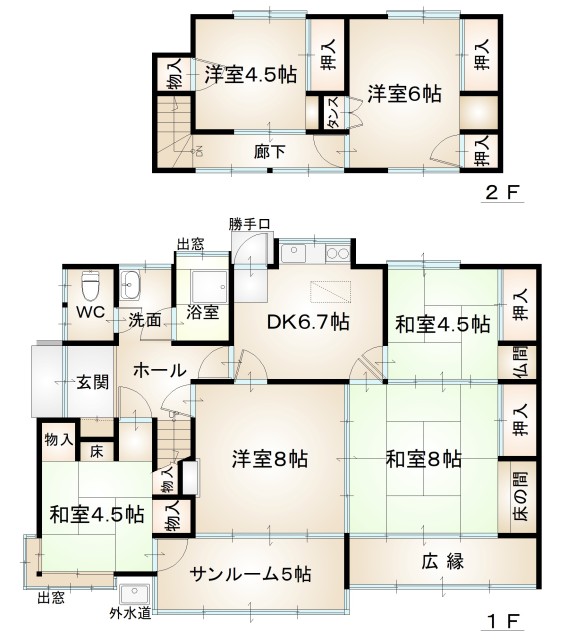 | 詳細間取 | 1階:和8・和4.5・和4.5・洋8・DK 2階:洋6・洋4.5 | ||