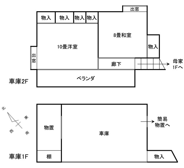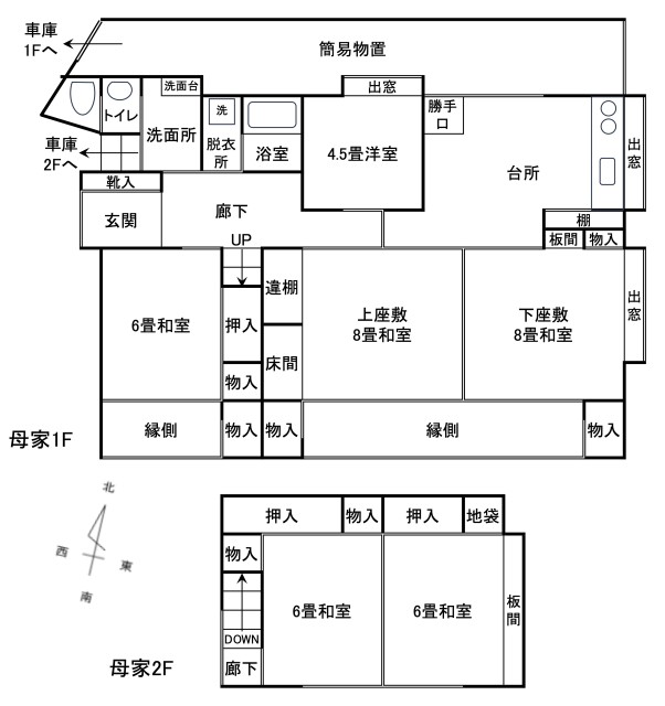 | 詳細間取 | 1F:和×3、洋、DK、トイレ、浴室 2F:和×2 車庫2F:和、洋 | ||
